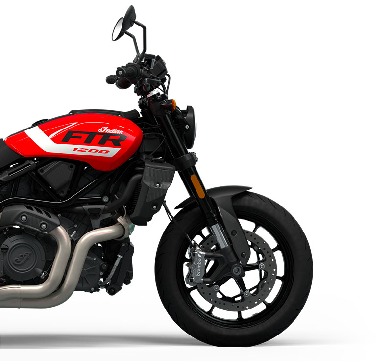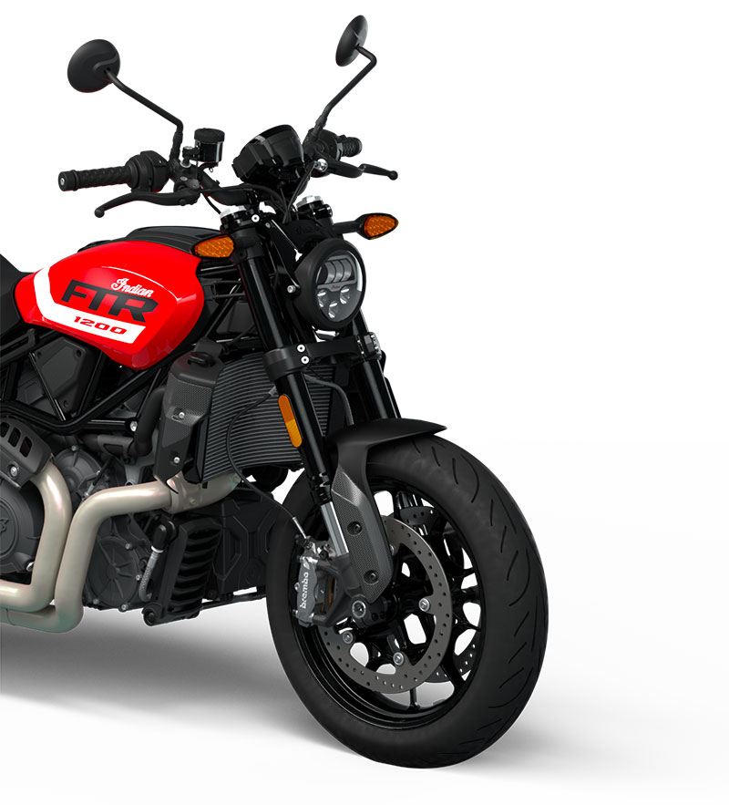 Nový model FTR, který byl původně navržen podle našeho dominantního závodního motocyklu FTR 750, který vyhrál mistrovství světa na ploché dráze, je plně optimalizován pro maximální výkon na silnici, kde dominují skuteční jezdci. Lehká 17palcová litá kola vpředu i vzadu jsou snadno přehazovatelná a obutá do superpřilnavých pneumatik Metzeler Sportec, které vás doslova přilepí k silnici.