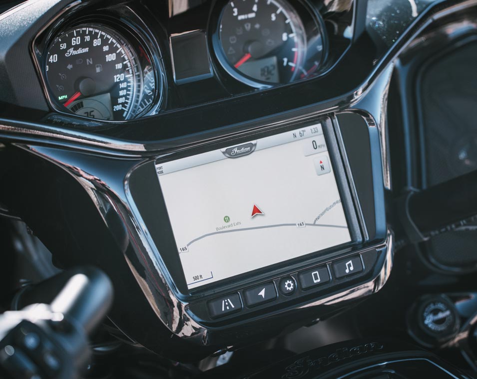 | Ride Command® | 7" displej z výroby s GPS navigací, Apple CarPlay®, Bluetooth® konektivitou, konfigurovatelnými ukazateli, statistikami jízdy a dalšími funkcemi. |