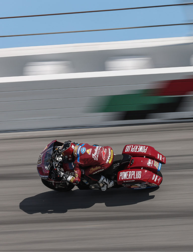 V roce 1909 jsme vyhráli první motocyklový závod, který se kdy konal na Indianapolis Motor Speedway. V roce 1937 vyhrál Ed Kretz první závod Daytona 200 na motocyklu Indian Sport Scout. Původní Wrecking Crew ovládla poválečnou závodní scénu. V této tradici jsme pokračovali v roce 2010 v závodech Flat Tracking Racing. Dnešní jezdci dělají totéž v Bagger Racing League Europe a v sérii MotoAmerica King of The Baggers. Různé éry, stejný výsledek.
